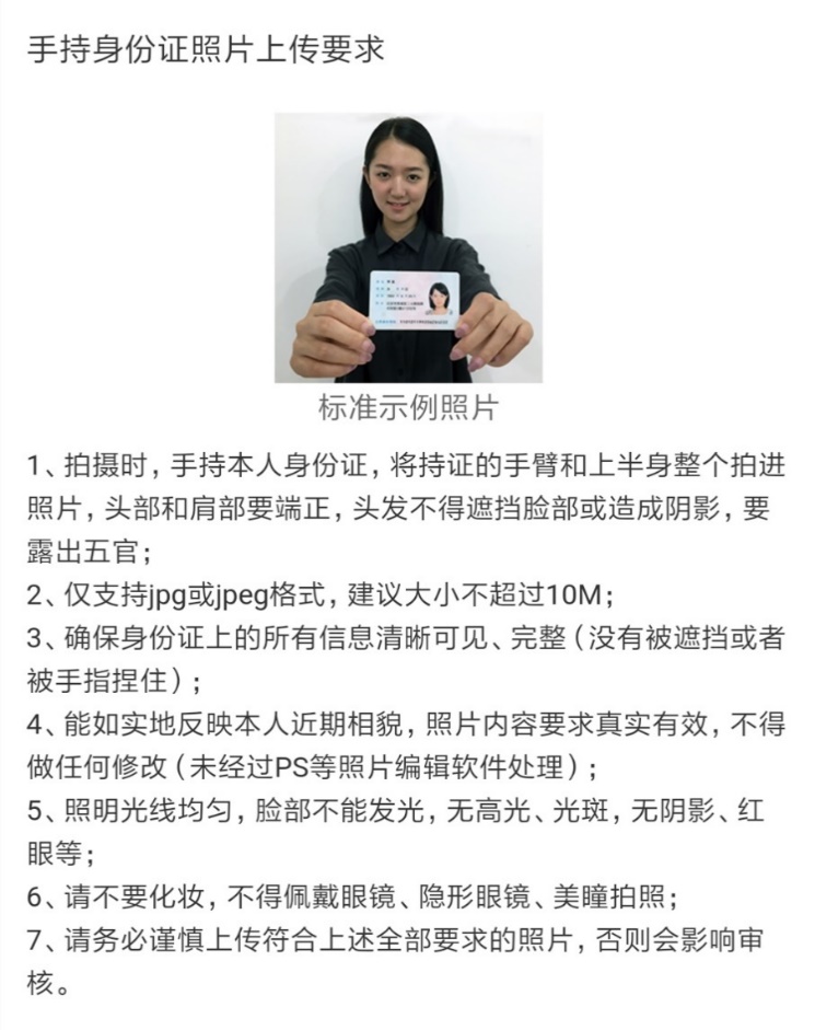 (2) 本人手持身份证照片,要求见下图