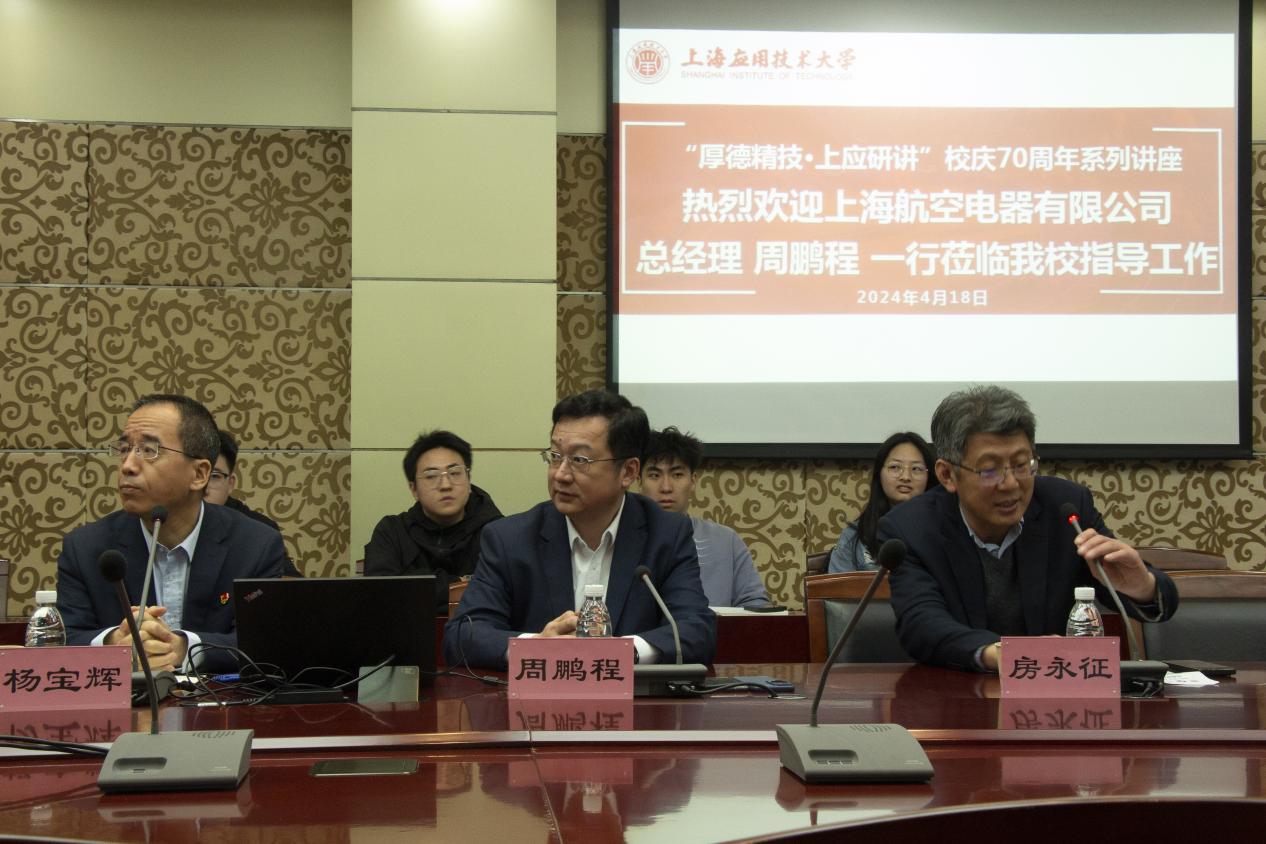 4月18日,校长汪小帆热情接待了来我校做学术讲座的上海航空电器有限公司党委副书记、总经理周鹏程。汪小帆校长对周鹏程研究员来校表示欢迎,希望上海航空电器有限公司与我校有更多深入交流与合作。周鹏程研究员以《机载照明系统现状与发展展望》为题为我校师生开展学术讲座,讲座紧扣学科专业前沿,开拓研究生技术视野。